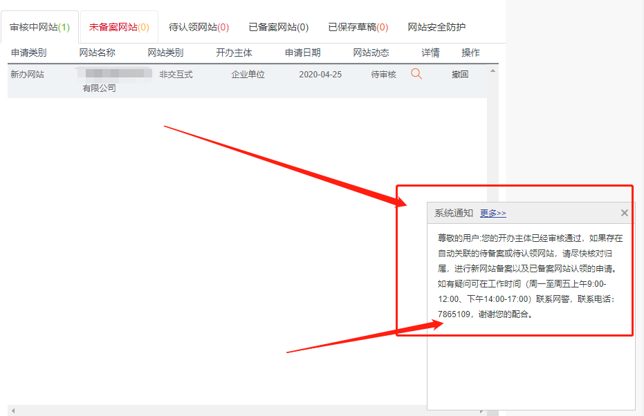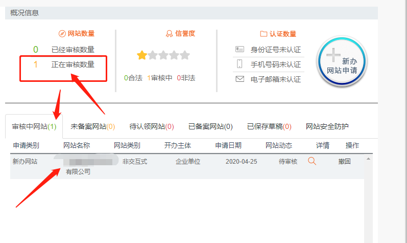 提交成功以后,則會顯示審核中網(wǎng)站為1